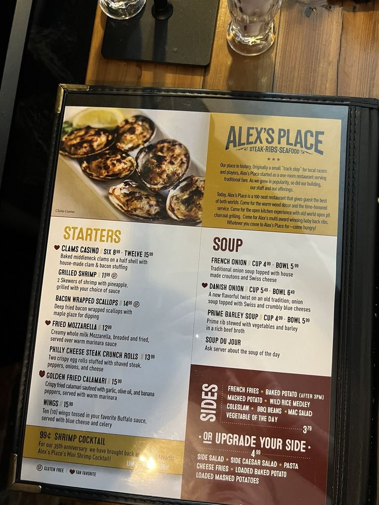 Customers rave about the flavorful dishes, from strip steak specials with mushroom and balsamic sauce to tender ribs and unique appetizers like bacon-wrapped scallops. The cozy yet lively atmosphere, along with attentive service, adds to the overall experience. If you're in the mood for a delicious meal served in a welcoming setting, Alex's Place is a must-visit destination.